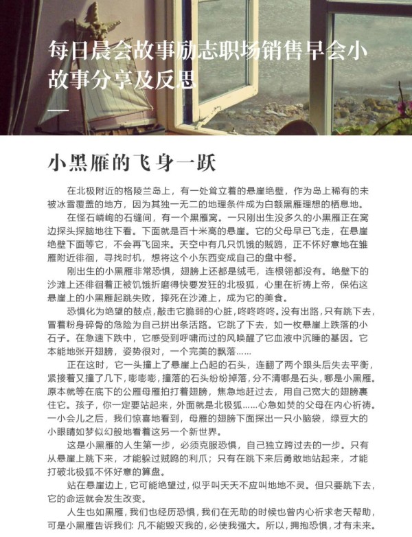 晨会励志小故事:小黑雁的飞跃晨会励志小故事分享(精选20篇)