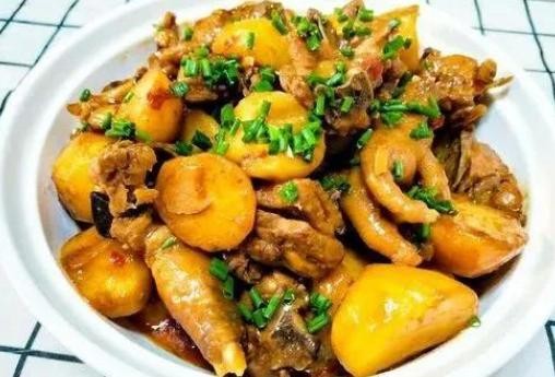 土豆烧鸡的制作相对简单。事先准备好鸡肉、土豆、葱姜蒜、料酒等食材。首先,将鸡肉切块备用,土豆切片备用。然后,热锅加油,爆香葱姜蒜,放入鸡肉和土豆煮至熟软,最后加入调味料烧制即可。鸡肉富含优质蛋白质,而土豆含有多种维生素和矿物质,有助于提高免疫力和促进消化。
