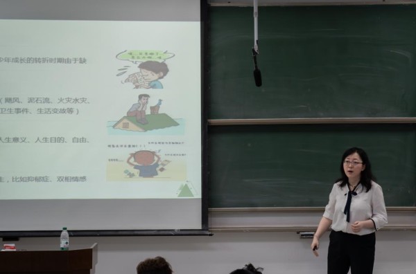 赵颖老师的讲解生动有趣,使在场的同学们深受启发。她以提问的方式引导思考,“你觉得心理危机的类型有哪些?”“你认为可能出现心理危机的情形?”等问题,引发了同学们的热烈讨论,使对话互动更加深入。讨论过后,赵老师进行了总结,帮助同学们解开了心结,也让同学们对“心理危机干预”这一话题有了更切身的体会。