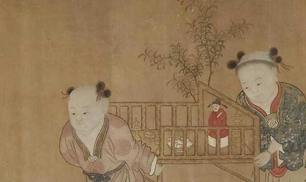画面中的两位小孩正沉浸于推枣磨的游戏。推枣磨属于秋季节令游戏,取枣子为原材料,因而在北方尤为流行。学者据此推测画作可能为北宋时期出品。这类玩具具有较强的季节性,因此画中其他玩具则显得无人问津,甚至被随意丢弃。