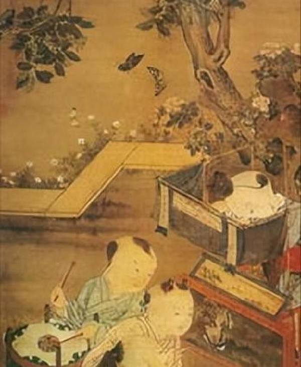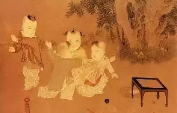 除了考古实物,一些古代绘画也为我们揭示了中古娱乐生活的细节。例如在《秋庭婴戏图》这幅画中,便出现了琳琅满目的儿童玩具。从画面来有捻转(陀螺)、轮盘、小棋盒、小佛塔以及被弃于地上的小铙钹。由此可见,两宋时期儿童的娱乐选择已经丰富多样。