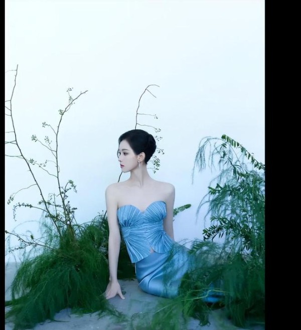 杨幂穿蓝色抹胸礼裙好贵气关晓彤蓝色抹胸开叉裙,美腿吸睛,妩媚动人