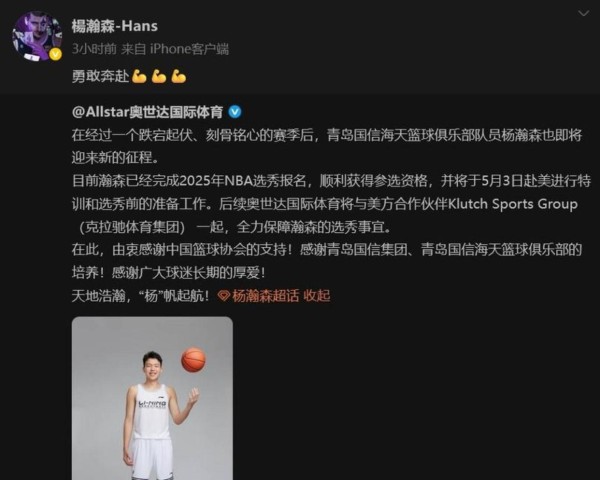 重磅媒体也看好!美联社模拟选秀,杨瀚森被篮网首轮第26顺位选中