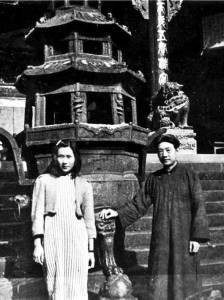 1943年夏,以青城山天师洞大香炉为背景,徐悲鸿和廖静文留下了难忘的第一张合影。