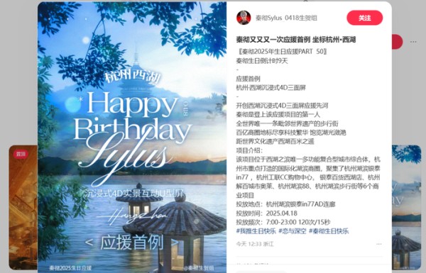 早在2月,游戏男主“祁煜”的生日应援企划便火热启动,直至4月才陆续落幕。这场应援规模空前,不仅覆盖国内30余座城市,更延伸至海外多个地区,通过多元的线上线下联动,成功打造出一场现象级生日应援。