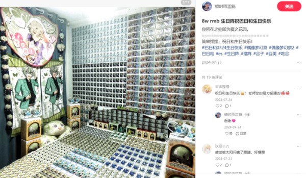 消费纪在《谷子溢价,“塑料黄金”凭什么拿捏年轻人?》中曾提到不同的谷子,根据质量、发行数、角色IP等等,形成了一套圈内独特的定价体系。热门角色的限定周边往往溢价严重,因此,仅是摆谷阵,单次生日应援的支出就可能达到五六位数。