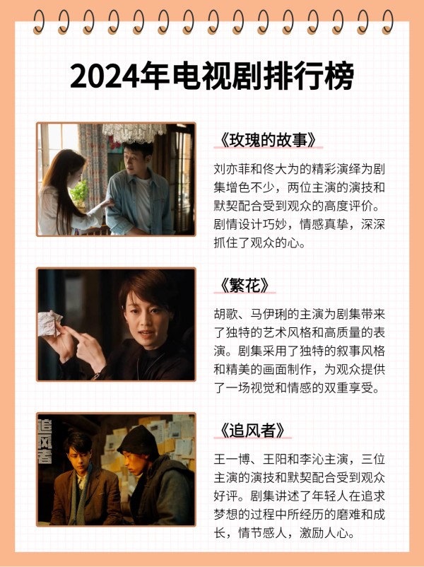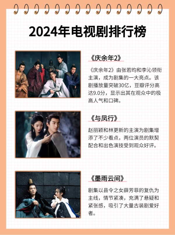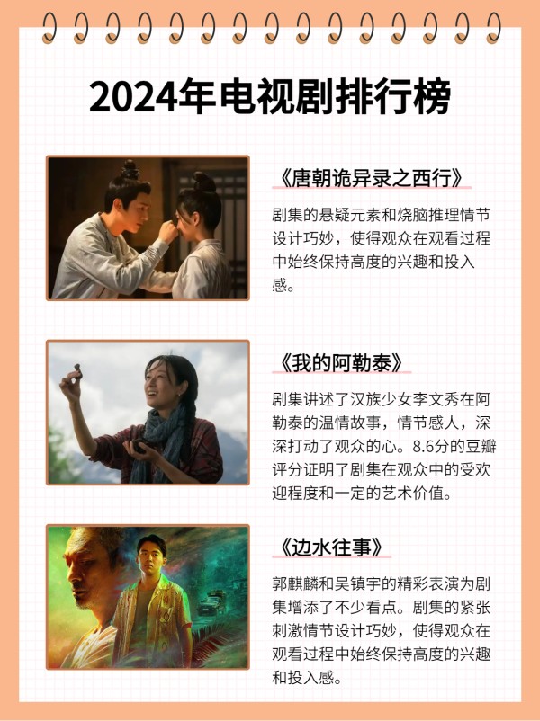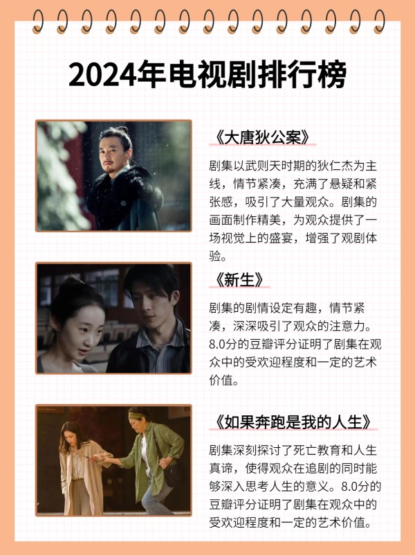 以上就是2024年必看的电视剧排行榜啦!每一部都有其独特的魅力,快来看看你都追了哪些吧!别忘了在评论区告诉我你的追剧感受哦!
