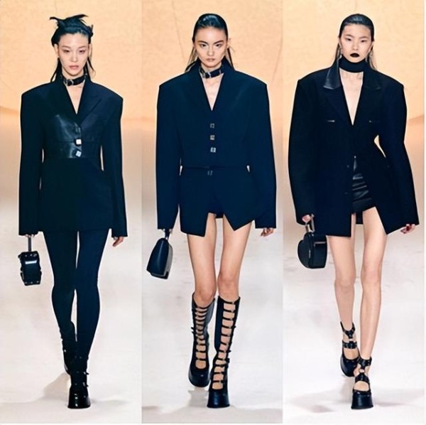 上世纪 80 年代的女装强悍宽大,男性化的肩部处理是尽人皆知的显著特征。这一特征在近年开始回潮,如在近期秋冬时装系列中,各大品牌几乎都是夸张的肩部设计。只不过与以往加入厚厚且笨重的大垫肩不同,现今的宽肩设计更强调利用面料的挺括感和服装的结构感去造型。