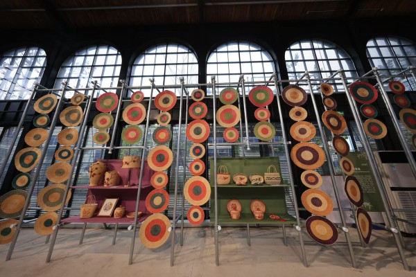 一些大型公共艺术装置也与非遗传承人合作。《生生不息》徐行草编公共艺术装置与徐行草编非遗传承人王勤合作。“草编圆垫是我们经常编织的物件,小一点就是杯垫,大一点则可能是锅垫、餐垫。从一个点开始,慢慢变大,形成不同大小的圆垫,这其中有‘生生不息’的含义,也象征着我们要把有近千年历史的徐行草编一代代地传承下去。”王勤介绍,公共装置上的大量草编圆垫,是她带领团队成员一起编织完成,而装置设计和内涵,则由章莉莉教授提供。最基础的编织技法,也最考验功夫,“如果用力不均匀,圆垫就无法平整。”编织技法在一代代传承人手中日渐熟练,徐行草编在《生生不息》中成长。