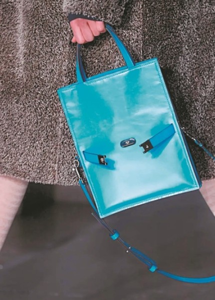记者还留意到,在2024春夏系列中,出现了符合人体工学的Fleming晚装包,以3D打印人造醋酸透明塑胶片,形状贴合髋部,亦可放入带有饰扣的皮包内。其中,标志性廓形的托特购物袋和信使包更掀起风潮。同样的灵感实际上也延续在秋冬新品中,比如玻璃水果造型的配饰、半球形树脂耳环采用前后倒置的佩戴方式,均可为日常造型增添点睛之笔。