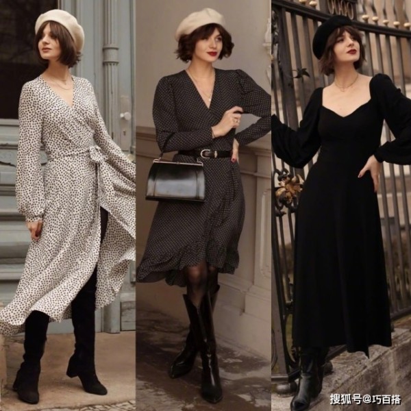 法式复古风穿搭,最不考验衣品的穿法,就是选择一条浪漫又文艺的连衣裙。而法国女人几乎人手一件就是波点、灯笼袖、方领、缎面等元素设计的小裙纸,再加上收腰的巧妙设计,展现出女性曼妙的身姿与迷人的气质,看上去就美到犯规。