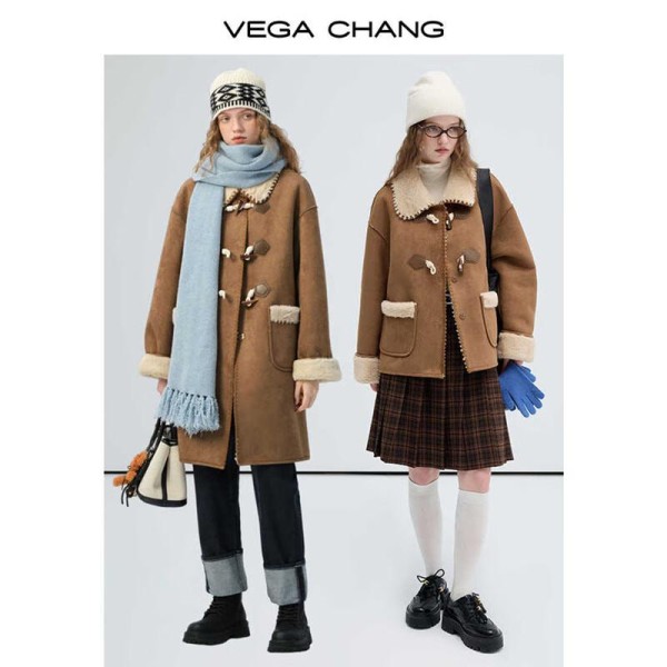 VEGA CHANG女士短外套以牛角扣和皮毛一体设计,打造出浓郁的英伦学院风。短款版型能够视觉拉长腿部比例,特别适合身材娇小的女性。复古棕色调不仅百搭,更能衬托出肤色的温暖感。