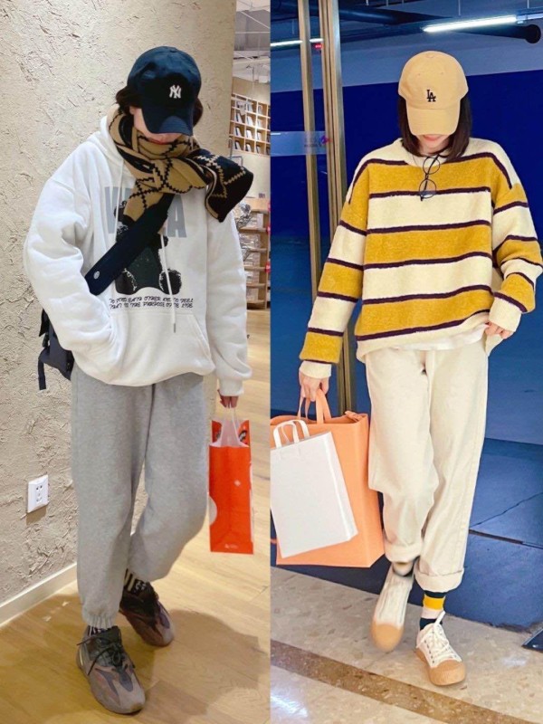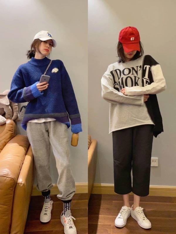 喜欢松垮穿搭的女人可以去试试卫衣搭配卫裤的穿法,宽大的卫衣会将身材曲线遮挡起来,这个时候卫裤在穿搭中并不会出现显腿粗的情况,反而可以修饰腿部线条。