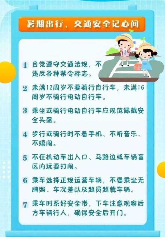然而,每年暑假都是各种意外事故的高发期,为了减少假期儿童溺水、交通、火灾等意外事故的风险,在孩子们尽情享受暑假带来的快乐与自由的同时,家长也要时刻绷紧安全这根弦,为孩子们的暑假生活筑起一道坚固的防线。