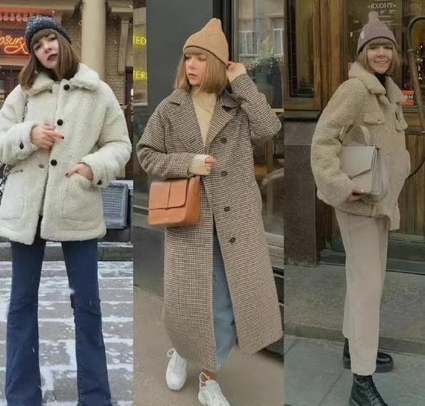 长裤是冬季常见的穿搭方式,不分年龄和身高,都非常实用。选择一件棕色格纹呢绒外套,搭配一条修身的黑色长裤,能够展现出纤长笔直的双腿,穿起来非常显瘦,再搭配上一双小皮鞋,更能强调整体的复古气息。此外,羊羔毛外套也是冬季外套中的亮点之一,它舒适厚实,保暖性极佳。搭配一条藏青色的微喇牛仔裤,不仅具有显瘦的效果,还展现出复古与甜美的双重韵味。