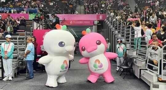 在东莞篮球中心,活泼好动的“乐融融”和稍显文静的“喜洋洋”两个“显眼包”,巧妙将全运会紧张刺激的赛事氛围,揉成了温柔快乐的人间烟火。活力四射的花式整活,不仅为现场观众带来了前所有未有的快乐,更迅速成为名副其实的大湾区新晋“顶流”。惹得网友忍不住感叹东莞的那两只“好癫”,尤其是粉色的“乐融融”。