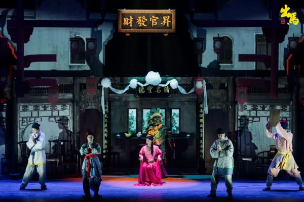视觉方面,《出马》舞美、服装全都是精心设计的明朝徽派建筑和文化风格,让人眼前一亮;舞台根据剧情结构从喜剧到悬疑和惊悚的转变做了创新——剧组在三面转台的基础上还叠加了一些小的转台,舞台就像魔方一样,可以来回切换,展现不同的剧情和氛围,务求给观众一个全方位的豪华视听盛宴。
