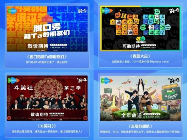 此前,腾讯综艺官宣成立了喜剧综艺排播带喜综联盟“笑吧”,集合了Sketch、脱口秀、相声、单排喜剧、年番、单场等不同形式,通过打造一系列喜剧类节目,用“鹅厂喜综联盟”的形式,激发广泛圈层的关注。