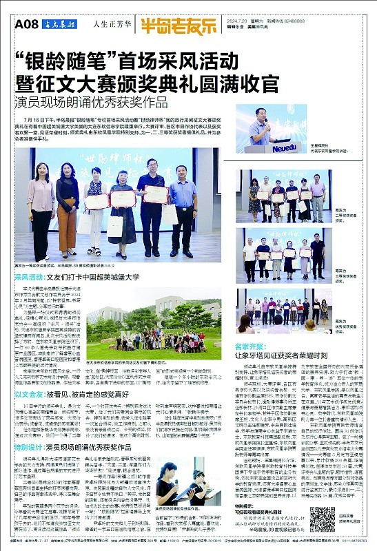 获奖稿件不但通过半岛老友乐官方微信发布,优秀稿件更可登载《半岛晨报》,在纸媒上留下了一份珍贵的回忆与纪念。与此同时,本报通过抖音、视频号、制作早安卡等形式,将征文活动场景化,综合呈现了大赛风貌,更在颁奖典礼环节与采风活动相结合,为广大文友提供了丰富的参赛体验。
