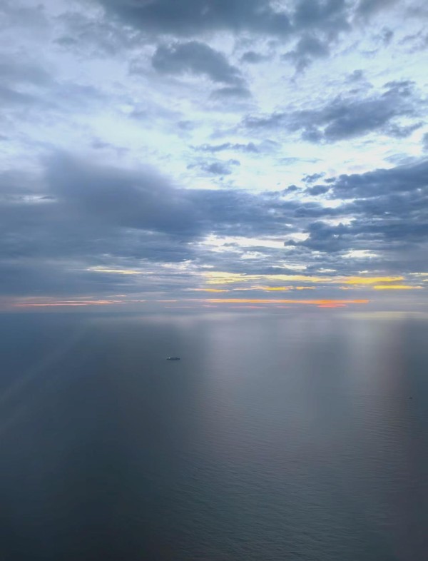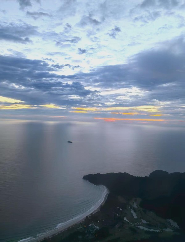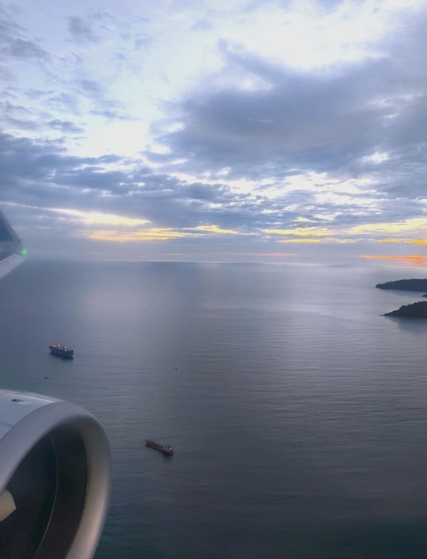 第一天,我们大部分时间都在飞机上或机场候机室度过。从广州出发,我们飞往哥打基纳巴卢,也就是亚庇。地图显示,这段旅程将穿越整个南中国海,从中国大陆一直飞至婆罗洲的东南部。然而,当我们乘坐的飞机升空后,窗外只有厚厚的云层,几乎无法欣赏到海上的风景。飞行中云层厚密,接近目的地时才见地面景象,最终抵达亚庇海湾上空的万家灯火。 直至接近目的地时,随着飞机的轻微降落,我们才得以一窥地面景象。虽然大部分时间窗外都是深蓝一片,甚至缺乏岛屿作为参照物,但降落过程中,亚庇的海湾、清晰可见的岛屿以及航行的游轮或货轮逐渐展现在眼前。最终,我们看到了下方的万家灯火,仿佛预示着即将迎接一段美好的旅程。