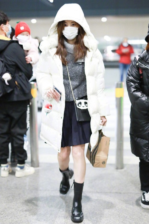 所以干净优雅的白色系羽绒服,能够使李一桐纤细的身型变得饱满起来,外表也更能增添优雅成熟气质。内搭高领毛衣和百褶短裙的“反季节”穿搭,将减龄成熟气质诠释的非常到位,青春少女气息扑面而来。