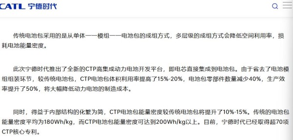 2019年9月,在法兰克福车展上,宁德时代推出CTP技术,省去“模组”这一中间层级,直接将大量电芯集成为一个完整的电池包,大幅度提高了磷酸铁锂电池的能量密度。