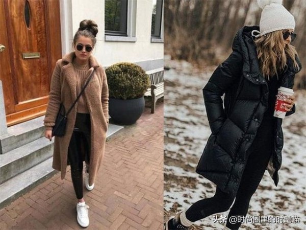 中长款外套是夹克无法御寒的替代品,也是打造女性身材的必需品。一件中长款外套可以修饰身材,同时也能穿出高级感。像图中的驼色羊羔绒大衣,配同色毛衣和黑色皮裤,让整个人看起来很显大气。修身款式羽绒服出来的效果也是一样,而且有更好的御寒效果。
