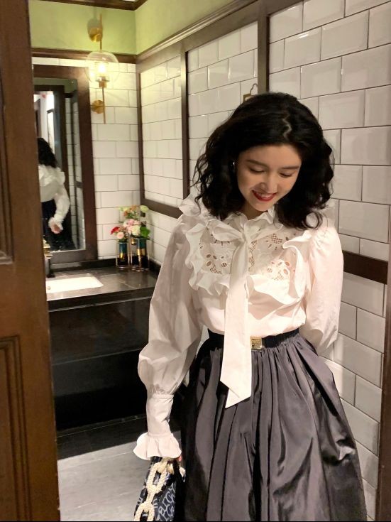 一件白色镂空宫廷风衬衣搭配黑色百褶泡泡裙,俏皮天真又可爱,穿出了法式浪漫的复古风情,具有古典之美。