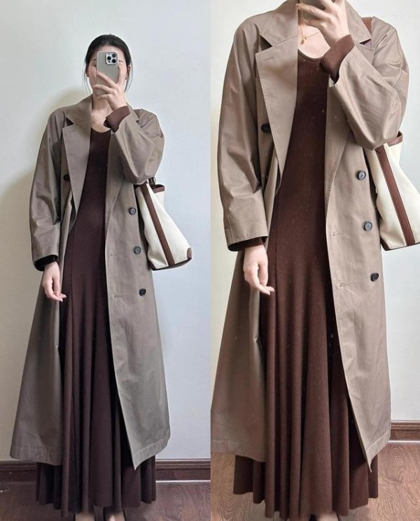 蕾丝连衣裙加短款毛绒外套。甜度超标。丝绸吊带裙配炭灰蓝大衣。脱外套瞬间全场静音。风衣内搭连衣裙。修身针织裙渲染慵懒秋日感。碎花长裙轻盈飘逸。内紧外松 对比时髦又活力。