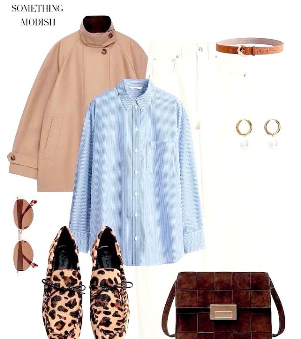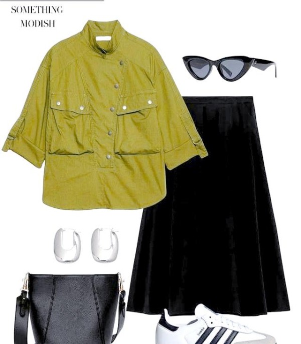 青苔绿衬衫提亮肤色,选择到小腿长度伞裙与厚底乐福鞋增腰身,适合多种天气。第二套穿搭建议:伞裙配工装衬衫。青苔绿衬衫相较于纯白色,更能提亮肤色,即使黄皮肤色也能穿出好气色。选择到小腿肚长度的伞裙,既能遮盖胯部又不会掩盖脚踝,瘦身效果恰到好处。将衬衫下摆全部塞入,提高腰线至胃部,再搭配一双厚底乐福鞋,轻松增高三厘米且不显累赘。这样的穿搭在南方二十多度的天气里,从春季穿到十一月都显得适宜,配上一个帆布包,即可轻松逛花市。