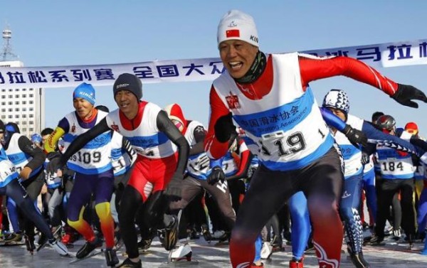 全国大众速度滑冰马拉松赛张家口站鸣枪