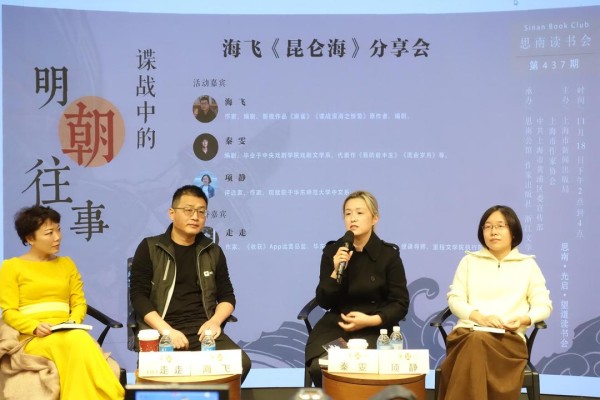 11月18日,《麻雀》《谍战深海之惊蛰》等谍战剧编剧海飞长篇小说新作《昆仑海》上海分享会在思南公馆举办。活动由走走主持,项静、秦雯与海飞展开了对谈,海飞和《我的前半生》《繁花》编剧秦雯开展关于小说和剧本之间关系的对谈。