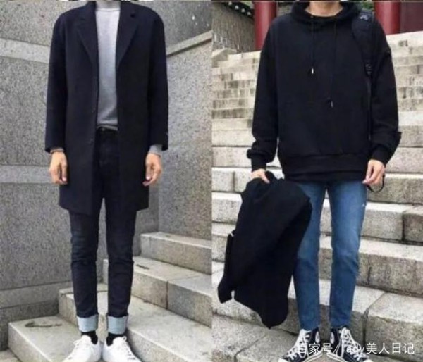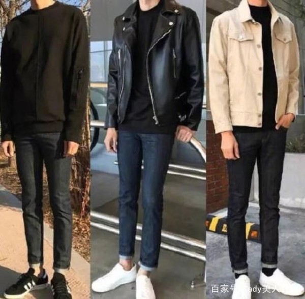 一身黑的穿法对于男生来讲最不容易出错,怎么搭都好看。机车风皮夹克搭配黑色针织衫炫酷潮流,深色牛仔裤更添帅气。米色的牛仔外套搭配黑色的半高领打底衫和黑色牛仔裤,配色经典又时髦。