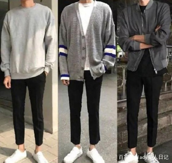 有些男生可能不太喜欢中长款外套的搭配,觉得有一些不好打理。不要着急,接下来的短款外套一定能让你满意。灰色系的搭配让人感觉慵懒帅气,灰色宽松的卫衣舒适保暖,适合这样早春的季节穿着;黑色的针织开衫面料垂坠随性,内搭纯白打底衫十分吸晴;灰色短款的飞行服外套潮流利落,all black的穿法让腿部比例拉长,黑色的九分休闲裤十分百搭,黑灰色调也比较日常。