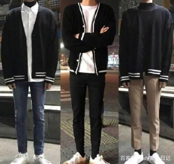 黑色条纹元素的针织开衫温暖又百搭,男孩子穿上毛衣外套给人感觉很文艺阳光,一看就是懂得搭配的小哥哥,搭配白衬衫严肃可爱,纯白打底衫简约纯粹,搭配黑色半高领针织衫更加保暖。搭配牛仔裤,黑色休闲裤抑或是卡其色九分裤都很好看。