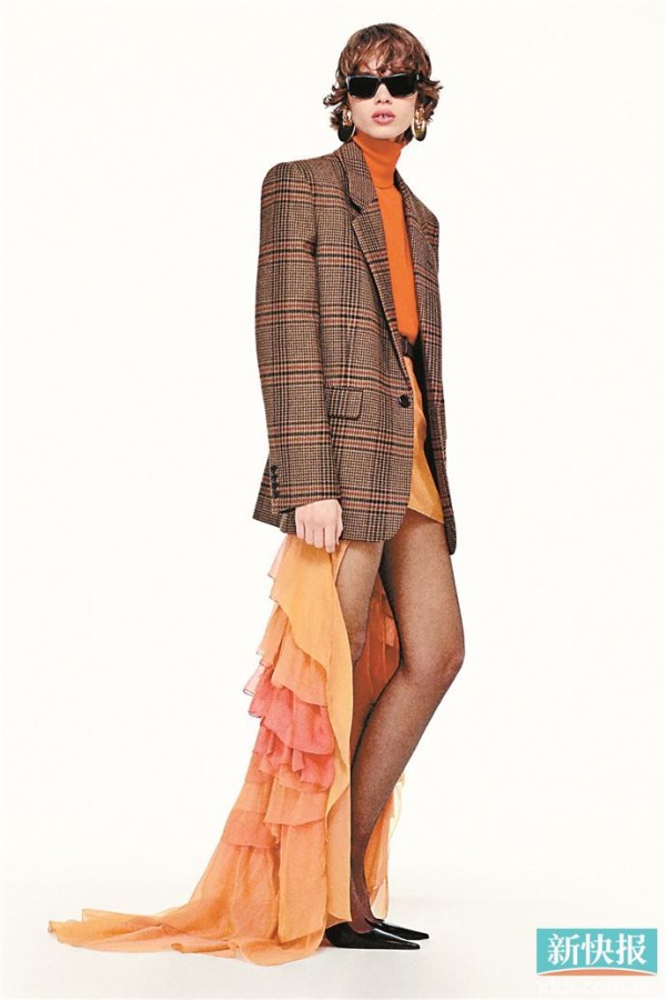 另外还有不少早秋单品的设计重心偏向左或右侧,即在裤装或裙装侧面加入荷叶边侧开衩、扭结设计、斜裁处理等,给单品带来动态美感外也营造出不对称视觉趣味。(记者 梁彧)