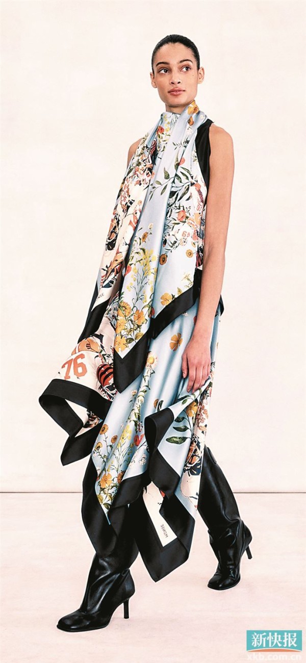 此外,风格鲜明的“回归款”也成早秋系列亮点,如窄管铅笔裙,凭借利落线条搭配短款开襟外套的标志性穿法,干练中透着精致;弗拉明戈风格的荷叶边裙装用层叠荷叶边传递浪漫张力;侧边采用垂坠剪裁的裙装以流畅线条展现慵懒随性,轻松拿捏氛围感;轻盈飘逸的丝巾连衣裙将柔美面料与灵动印花结合,行走间自带微风感……