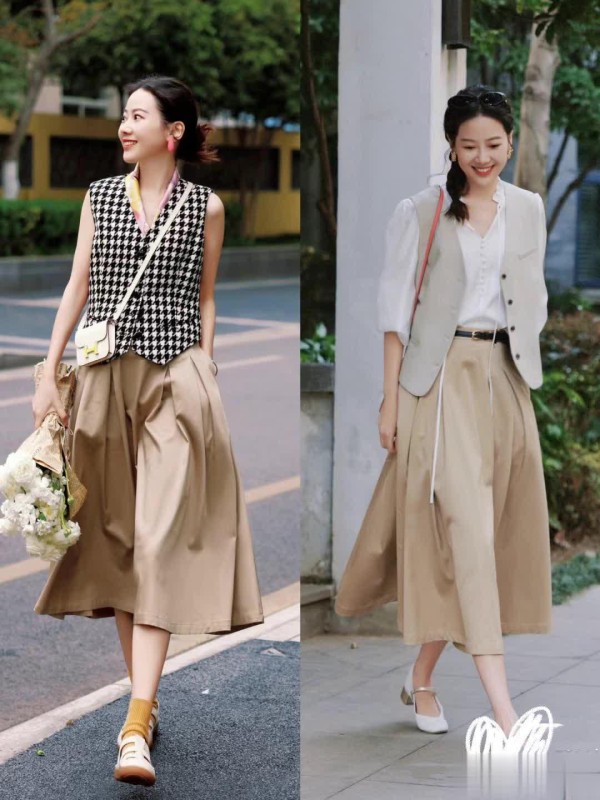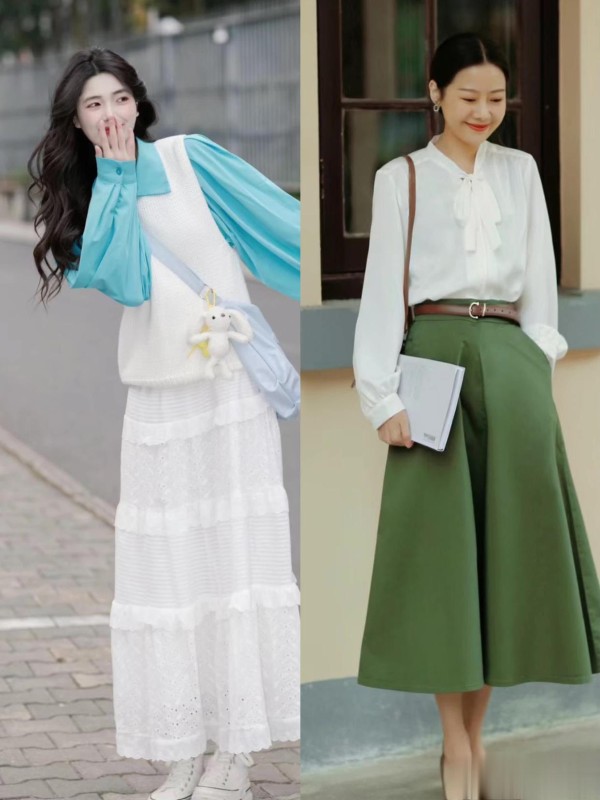 选择高腰的半身裙,还是A字形的剪裁包容性更强。腰粗、胯宽、臀厚,或者体型粗壮的人群,都可以选择这种高腰的半身裙。