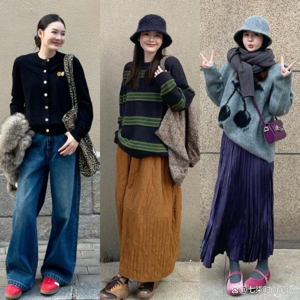 冬天谁能拒绝温柔软糯的针织衫呢?宽松的版型自带慵懒随性,单穿搭配半裙的灵动,既能护住上半身的温暖,又能靠半长裙打造轻盈感,降温了,就直接加件厚外套。