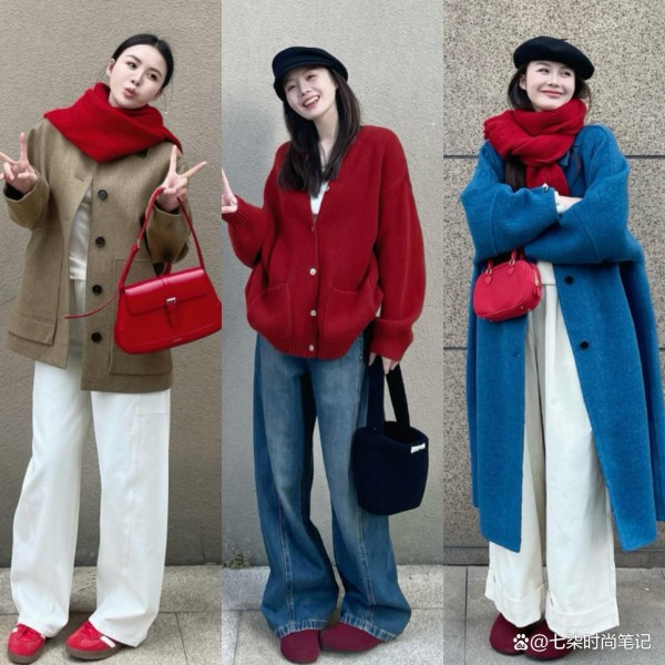 快临近年末了,红色系出镜率越来越高。经典的红蓝、红棕配色日常都可以照着搭起来。尤其是驼色、棕色的外套,担心不衬肤色,在脖子上加一条红围巾,瞬间显得面部红润气血足。