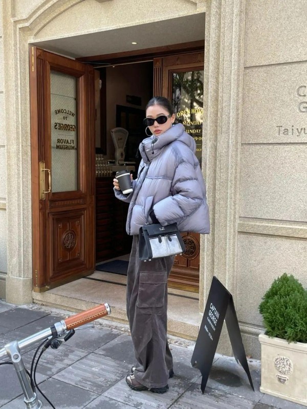 在挑选棉服时,大家尽量以辣妹风单品为主,比如,可以选择不过胯的肯豆风羽绒服,超短款设计简单明了又有性价比。