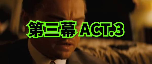 第三幕的目的是让观众兴奋:这一幕往往会避开前两幕提出的问题,重点转移到动作场面上,首先可能会编排一部电影最激动人心的场景,然后会穿插对话总结故事的主题。