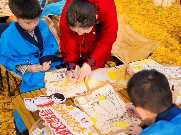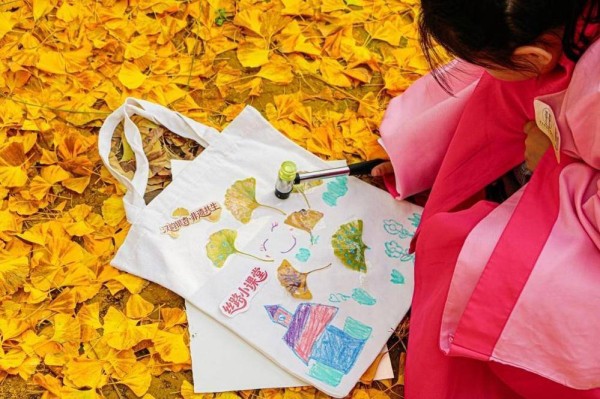最受孩子们欢迎的是非遗体验环节。大家以银杏叶为素材,将剪纸、拓印等传统技艺与自然元素巧妙结合。灵巧的双手剪出一幅幅秋日画作,细致的拓印将银杏叶的脉络永久留存于帆布袋上。这一刻,古老的非遗技艺在孩子们手中焕发新生,自然之美与人文之光交相辉映。