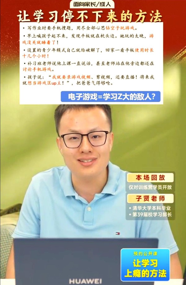 在当今社会,电子游戏似乎已成为孩子们成长道路上的一个难以逾越的障碍,甚至被许多家长视为影响学习的头号敌人。但究竟是什么魔力让孩子们沉迷于游戏之中?又该如何引导他们将这种兴趣迁移到学习上呢?在上周五的公开课中,子贤老师深入剖析了孩子沉迷游戏的本质,并巧妙地将这些洞见应用于学习领域,激发了孩子们对学习的热情与兴趣。这种“上瘾”式的学习体验,不仅让孩子们在游戏中找到了乐趣,更让他们在学习中找到了成就感。