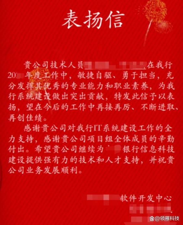 该项目于成功上线后,获得客户高度认可,收获客户表扬信,且项目组核心成员获评年度优秀表彰。