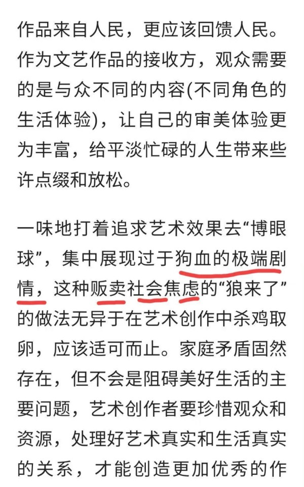 所以说,两大官媒说得都没有错,只是受众不一样而已,有人正在经历或者经历过或者将要面对,而有些人只经历了其中一小部分,他们就会觉得很狗血了!