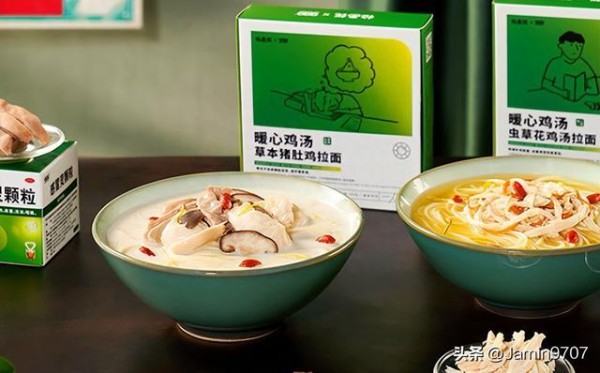 拉面说 X 999感冒灵「暖心鸡汤」联名礼盒包含虫草花鸡汤和草本猪肚鸡两款鸡汤拉面,以及手机防滑贴、简易手账本、茶包等限定周边,为消费者提供一剂「治冷良方」,并在聚划算欢聚日开售。拉面和感冒灵,食品和药品的奇妙组合,这样的跨界联名让人倍感新奇有趣。