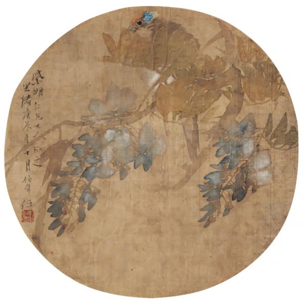 任伯年 《紫藤小鸟图》 纨扇 1881年