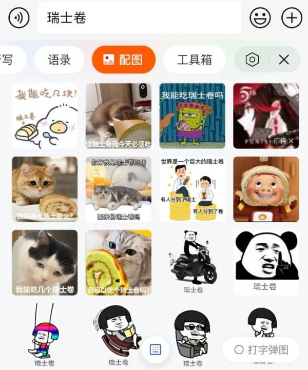 而当朋友发来“八个瑞士卷”的搞怪表情包,她也可以从AI配图迅速找到对应的梗图,“这瑞士卷我今天必须吃”。