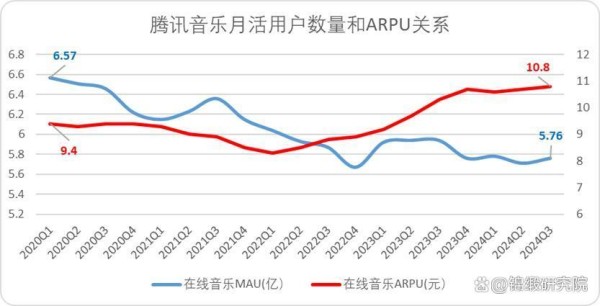 与之对应的是,腾讯音乐的在线音乐业务用户平均收入(ARPU)同期从9.4元增长至10.8元,反倒是上涨了15%左右。